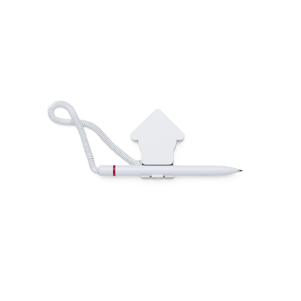 Caneta balcão plástica com suporte e adesivo auto colante. Carga esferográfica azul. QUANTIDADE MÍNIMA DE 100 PEÇAS!