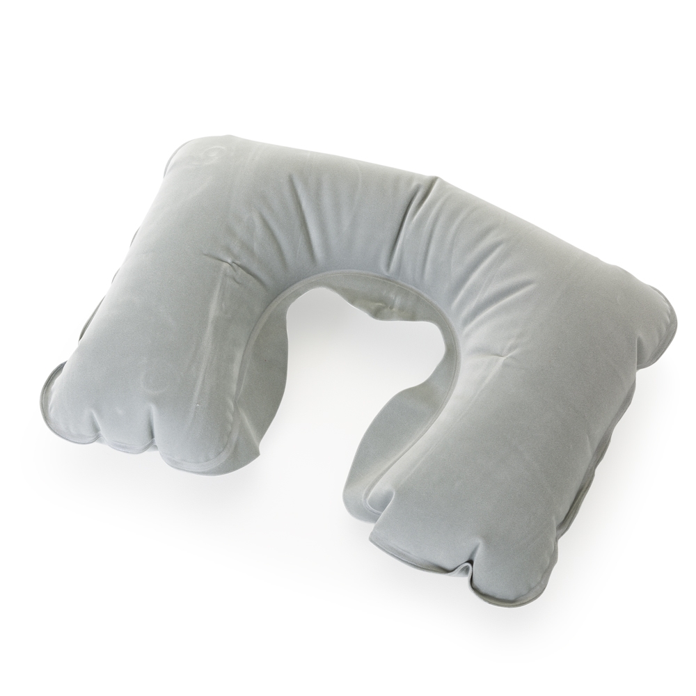 Kit viagem com 3 peças, contém: travesseiro inflável(revestido de veludo), máscara para olhos de cetim(revestido com espuma) e um par de protetor auricular. Travesseiro colorido, máscara sempre preta e protetor sempre laranja. Acompanha uma necessaire colorida de veludo para guardar o kit.