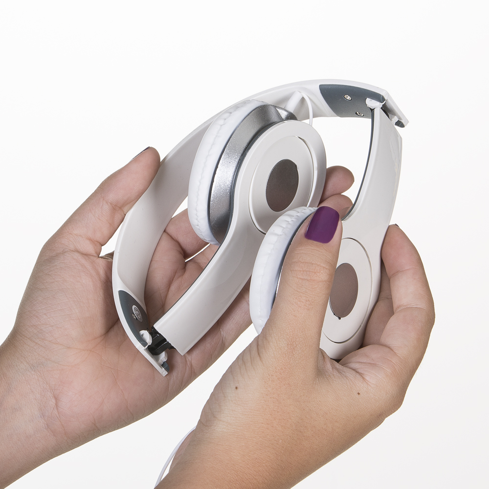 Fone de ouvido estéreo articulável, protetor em couro sintético com espuma e material plástico inteiro colorido com detalhes prata. Headfone de hastes com altura regulável e entrada P2. Compatível com Iphone, Ipad, Ipod, aparelhos de celular, tablets, mp3, mp4 e etc.