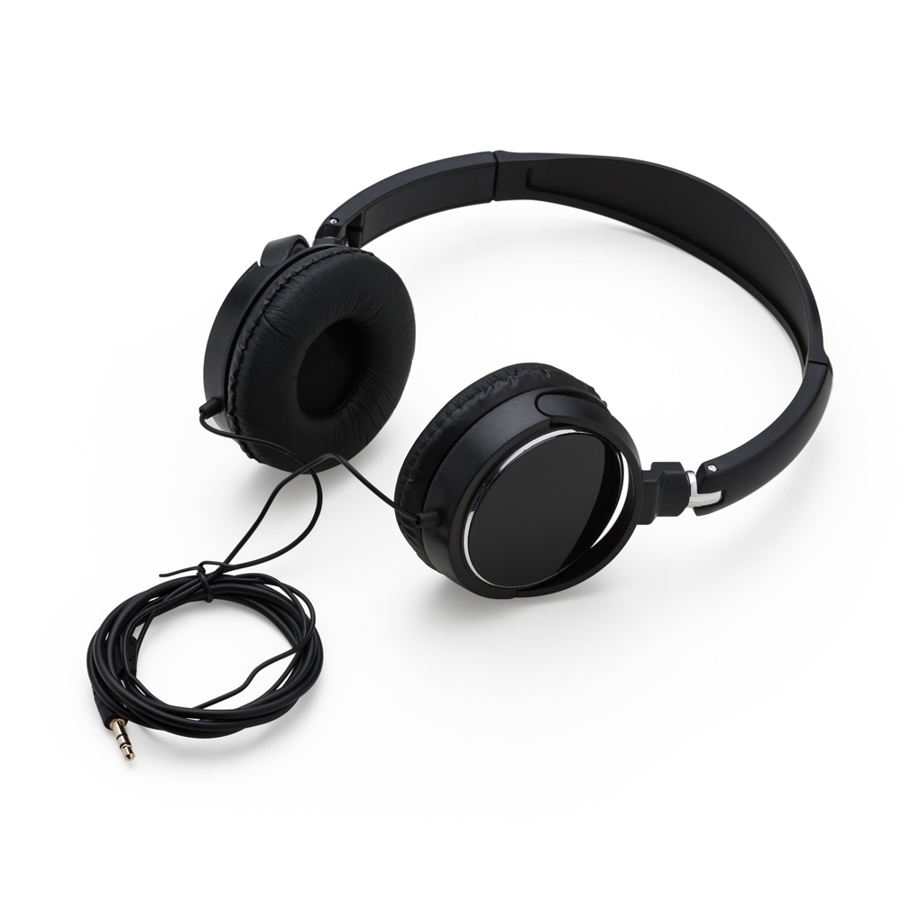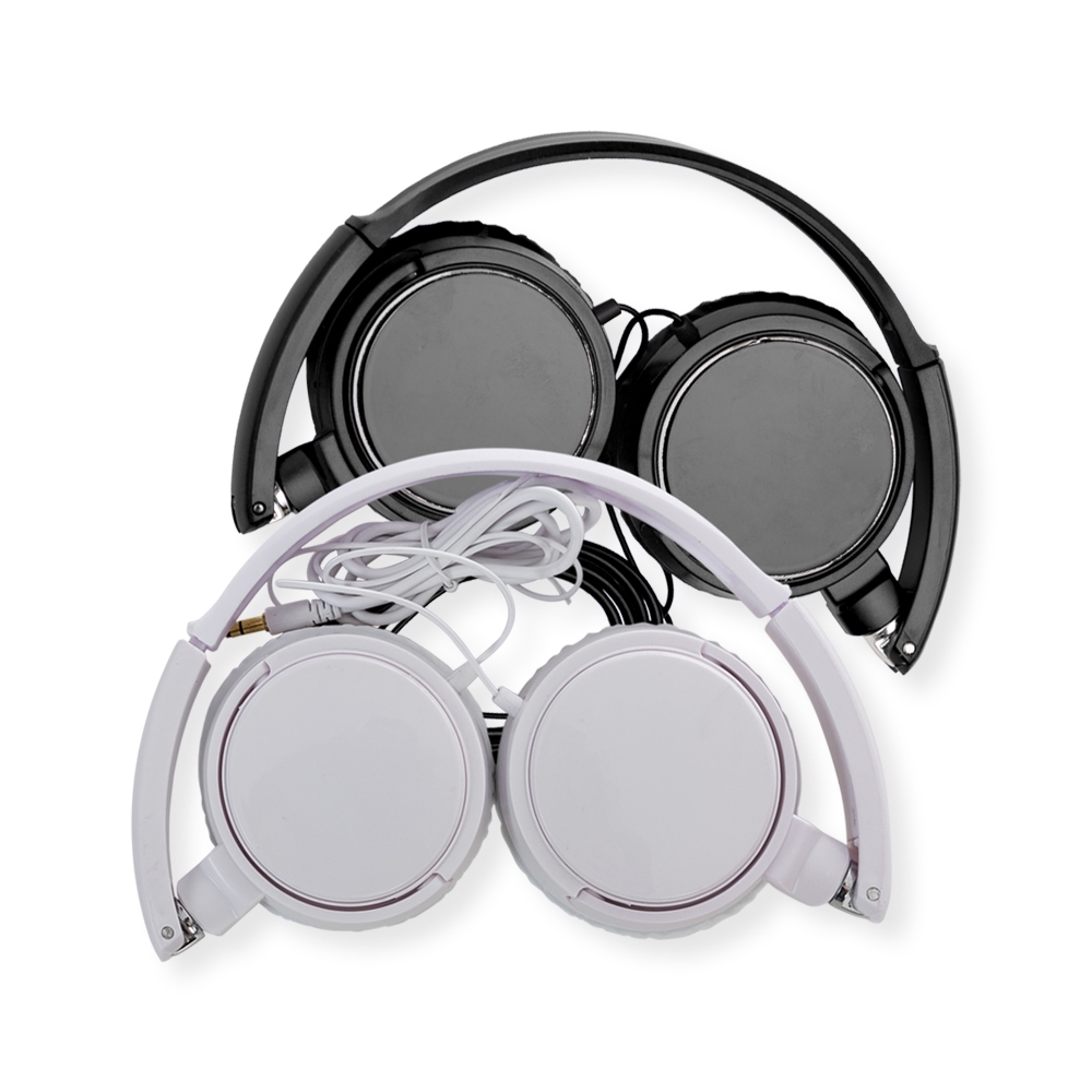 Headphone estéreo, plástico resistente com haste ajustável e fone giratório. Entrada P2.
