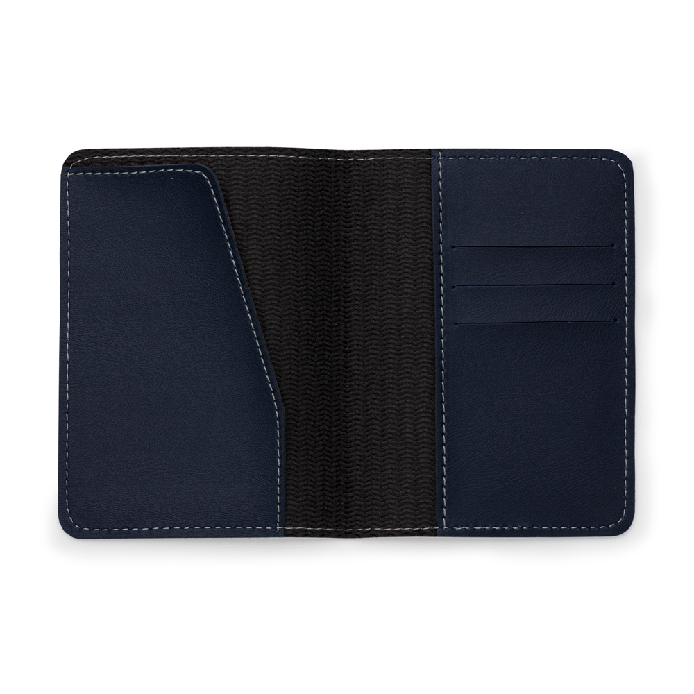 Porta passaporte Bidins em couro sintético, possui três compartimentos na lateral para cartões.