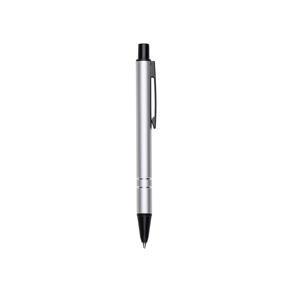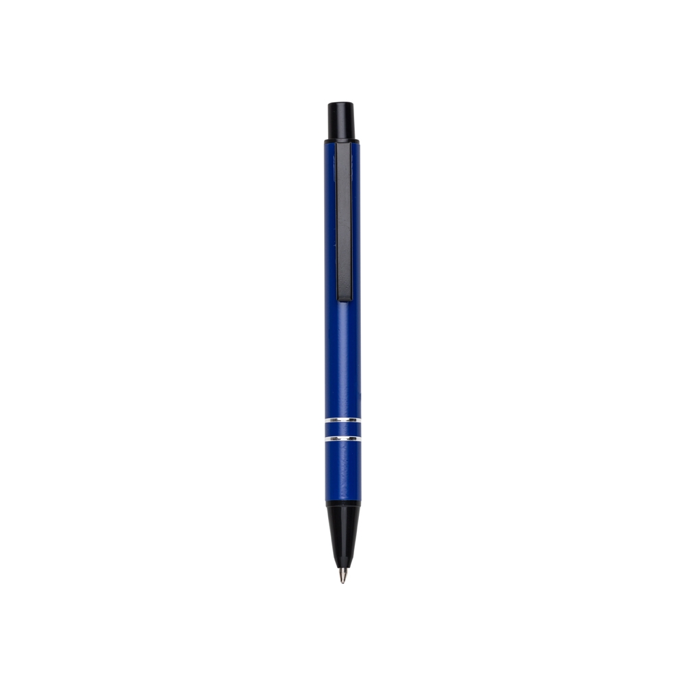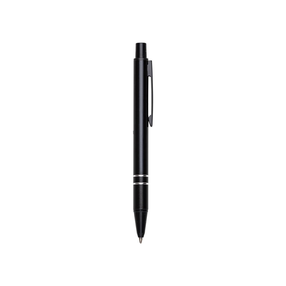 Mini caneta semimetálica com carga esferográfica azul e acionamento por clique. OBS.: PEDIDO APENAS MÚLTIPLO DE 50 PEÇAS!