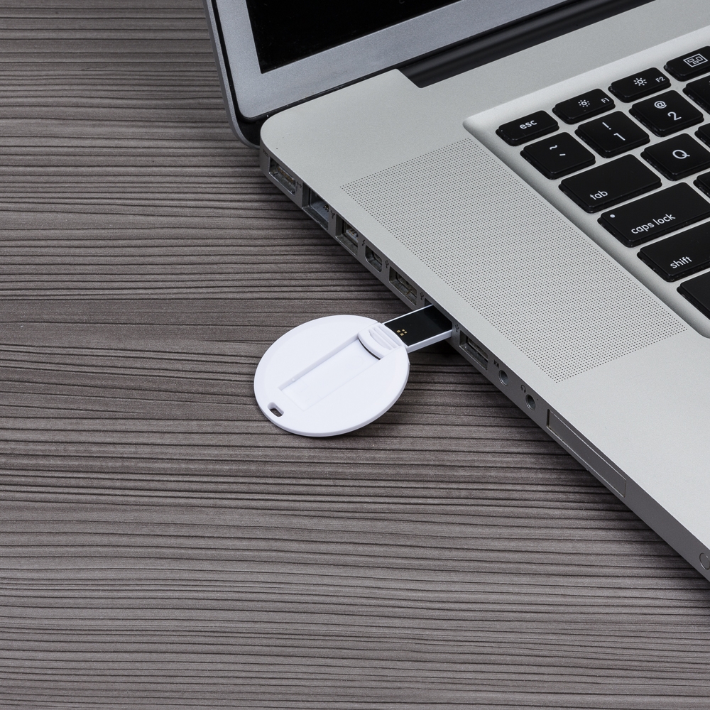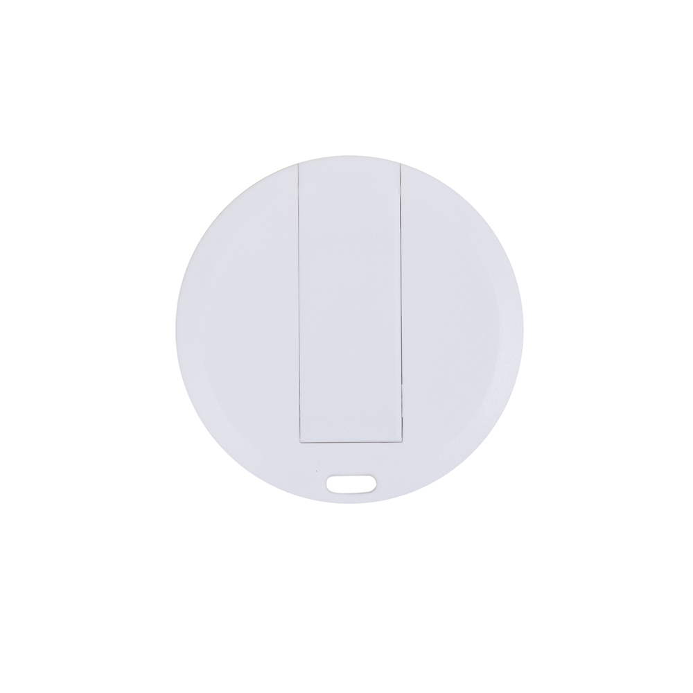 Carcaça redonda para pen card, basta empurrar o suporte para encaixar a memória COB. Parte inferior com um “furo” para colocar algum cordão.