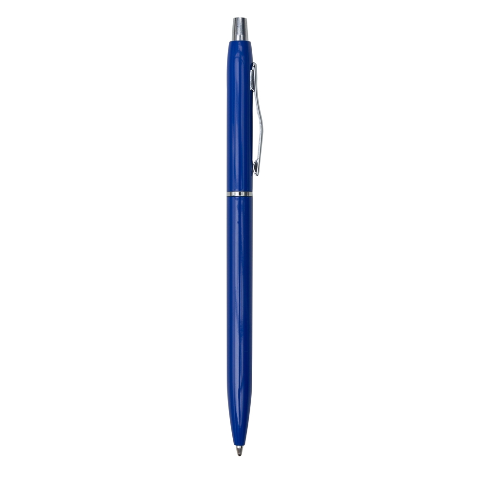 Caneta metálica com carga esferográfica azul e acionamento por clique. OBS.: PEDIDO APENAS MÚLTIPLO DE 100 PEÇAS!