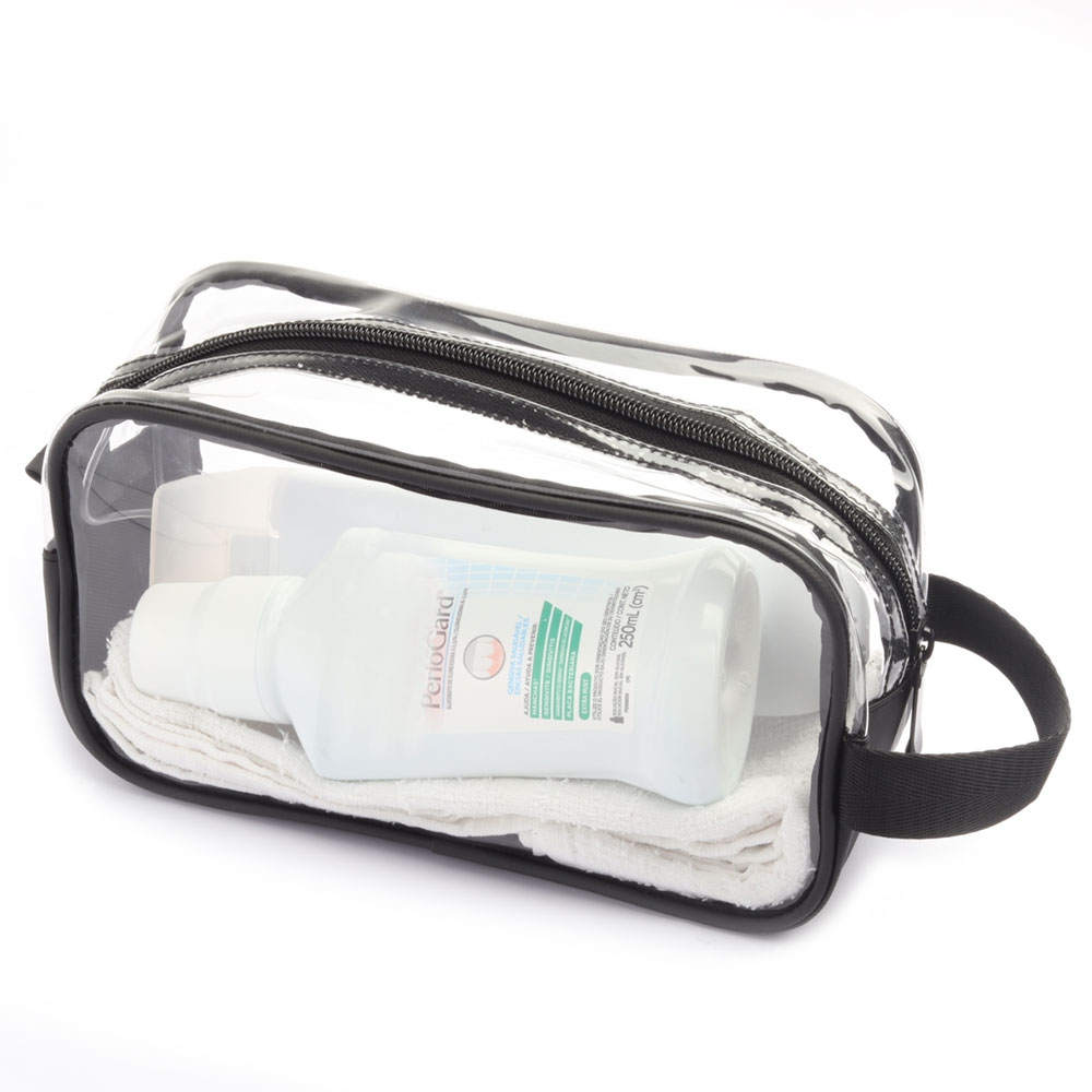 Nécessaire em pvc com detalhe em poliéster.