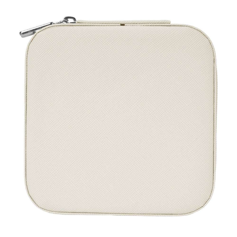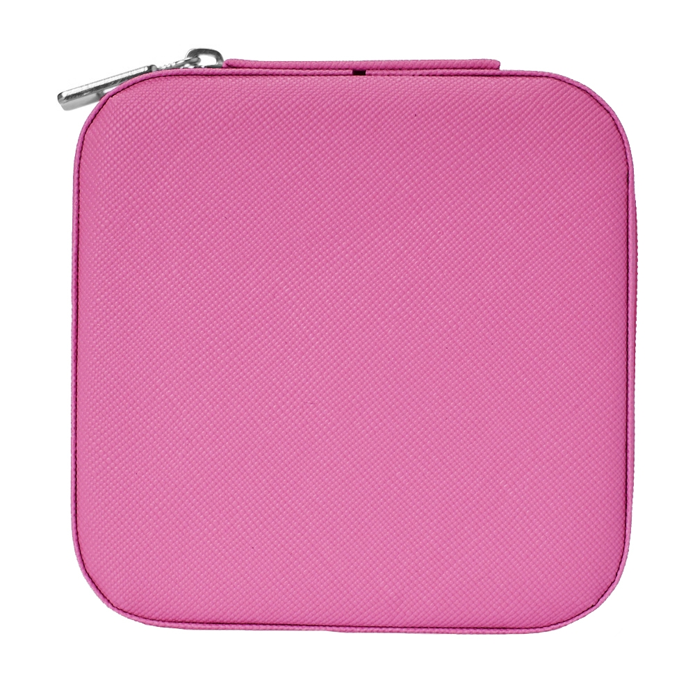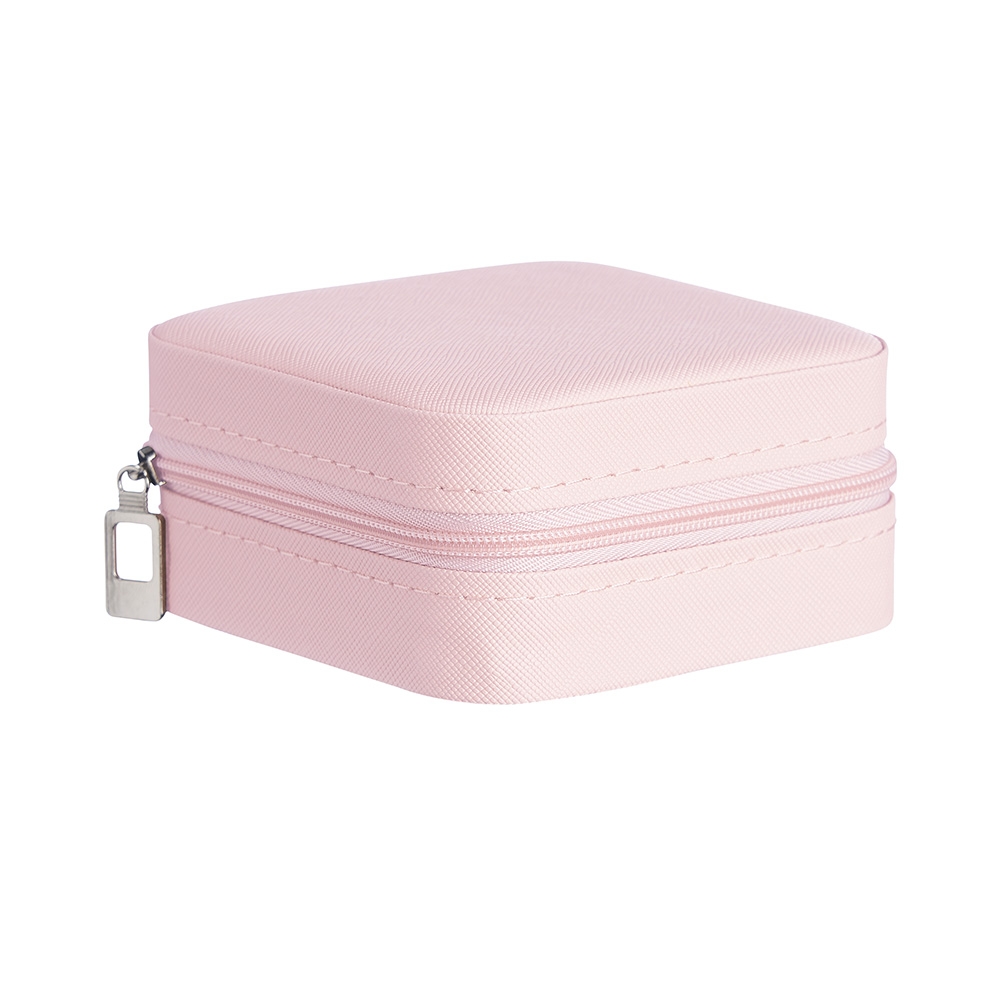 Porta joias de couro sintético com revestimento aveludado. Possui compartimentos internos para anéis, brincos, pulseiras e colares.