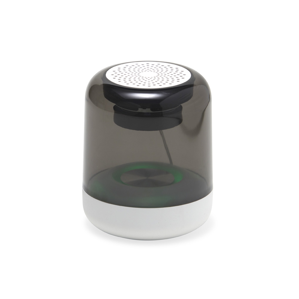 Caixa de som multimídia com luzes led. Operante nos modos bluetooth, rádio FM e cartão TF (MicroSD). Acompanha cabo USB.